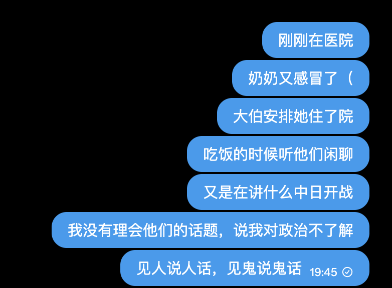 我说:“我们还是聊点其他的吧,比如奶奶的病情,她想吃点什么,我们给她买回去……”
